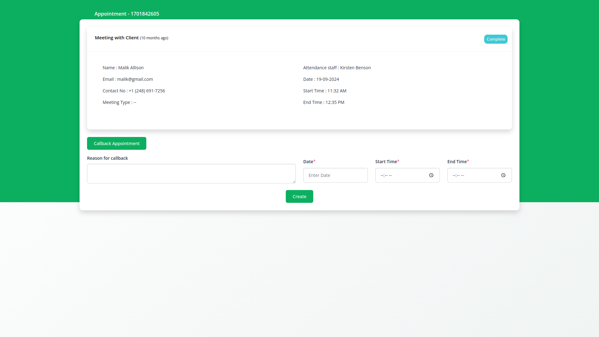 Instead of creating an appointment again, you can easily book an appointment through a callback only.
